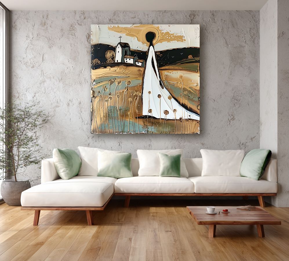 High quality canvas 410g/m2 is hand stretched on the back sides of the inner frame. Thanks to a depth of 2 cm, the frame offers a ready to hang art piece that will enhances your home or any other environment. This products are protected with acrylic satin varnish to prolong the life of your art .