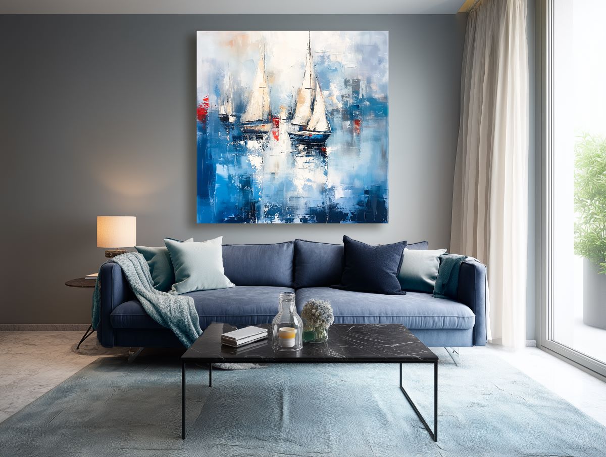 The painting symbolizes serenity, freedom, and the journey of life—an invitation to escape the noise of the world and drift into a moment of quiet reflection. The sailboats can also represent companionship and shared voyages, making it perfect for spaces of connection and calm.